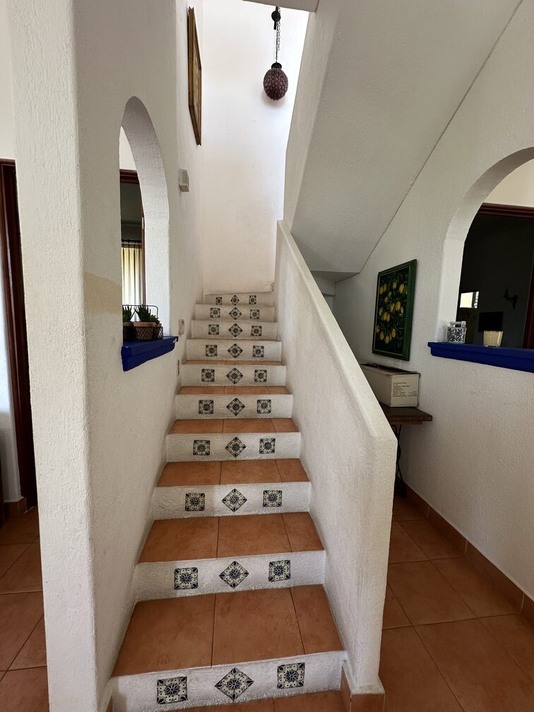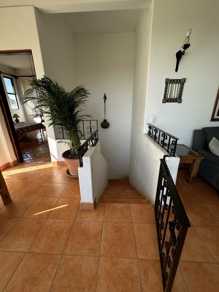 Planta alta : Tres grandes recámaras, tres baños completos. Los techos altos permiten una excelente temperatura en interior, cuenta con muy buena ventilación natural. Cómoda sala de tv con ventanales hacia jardines y alberca.