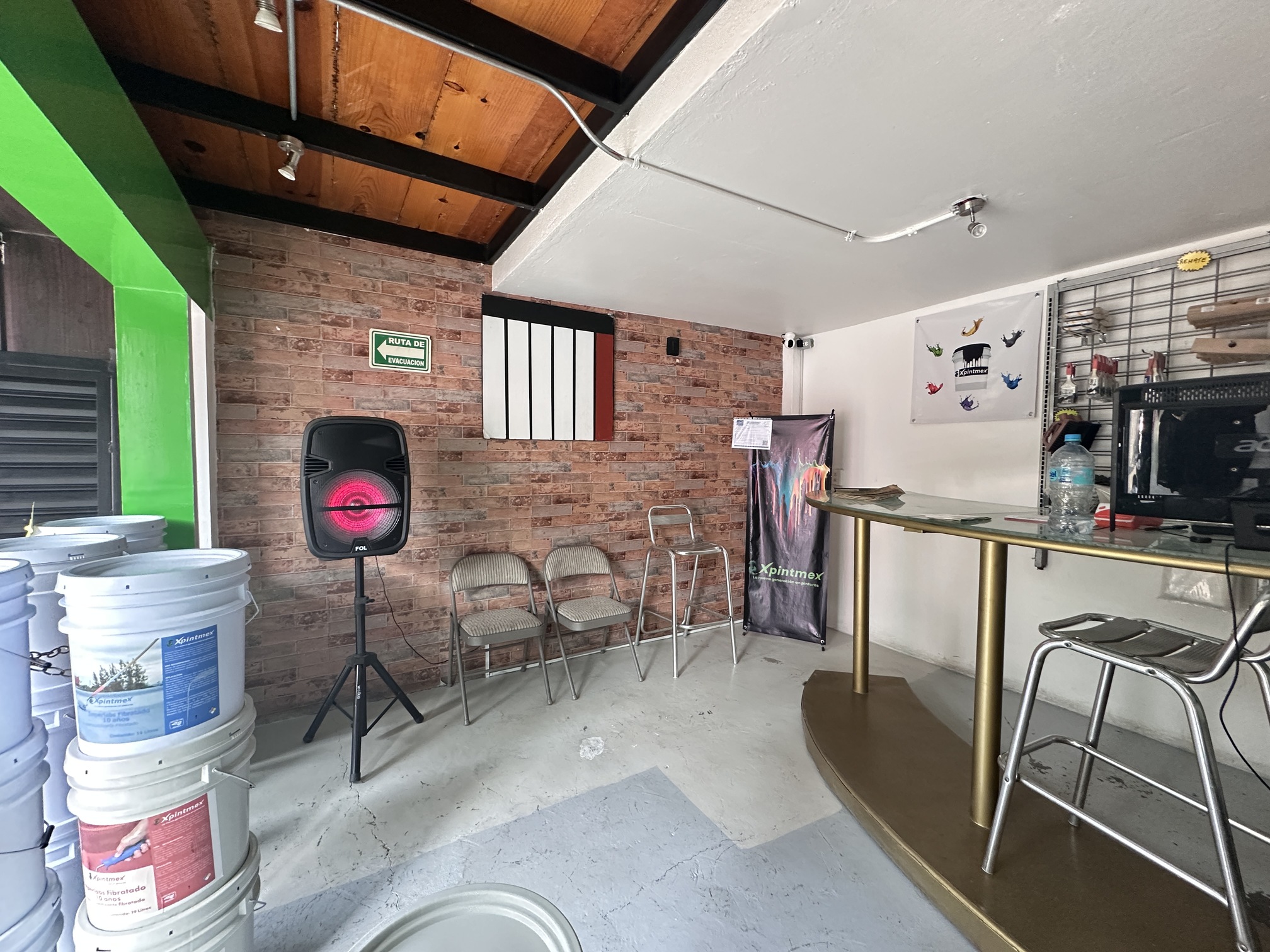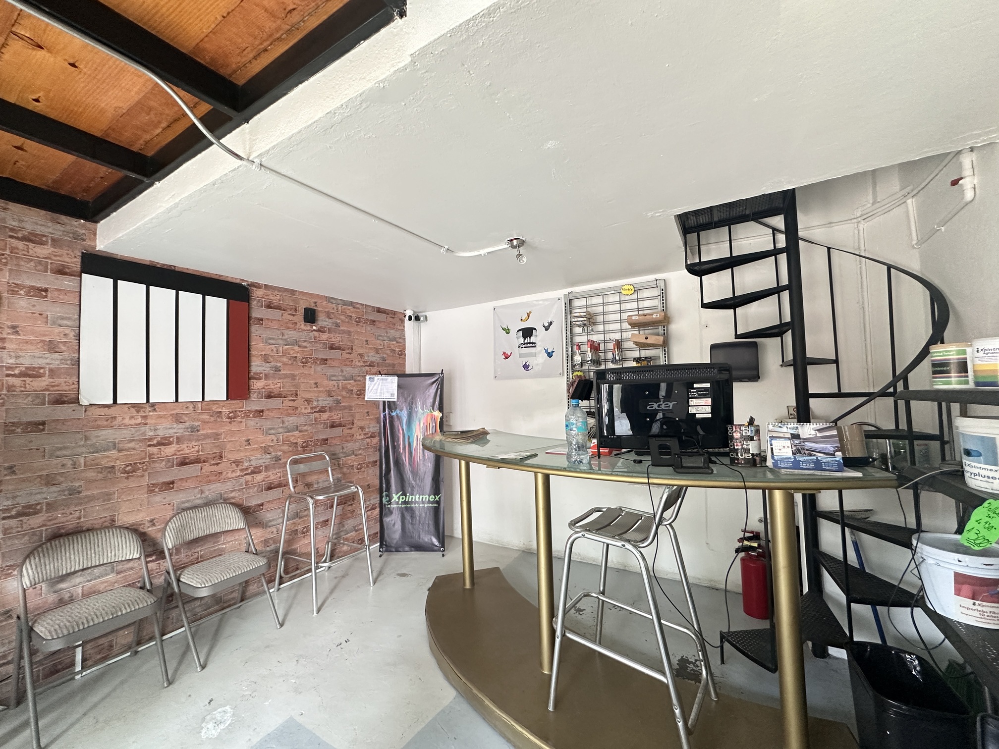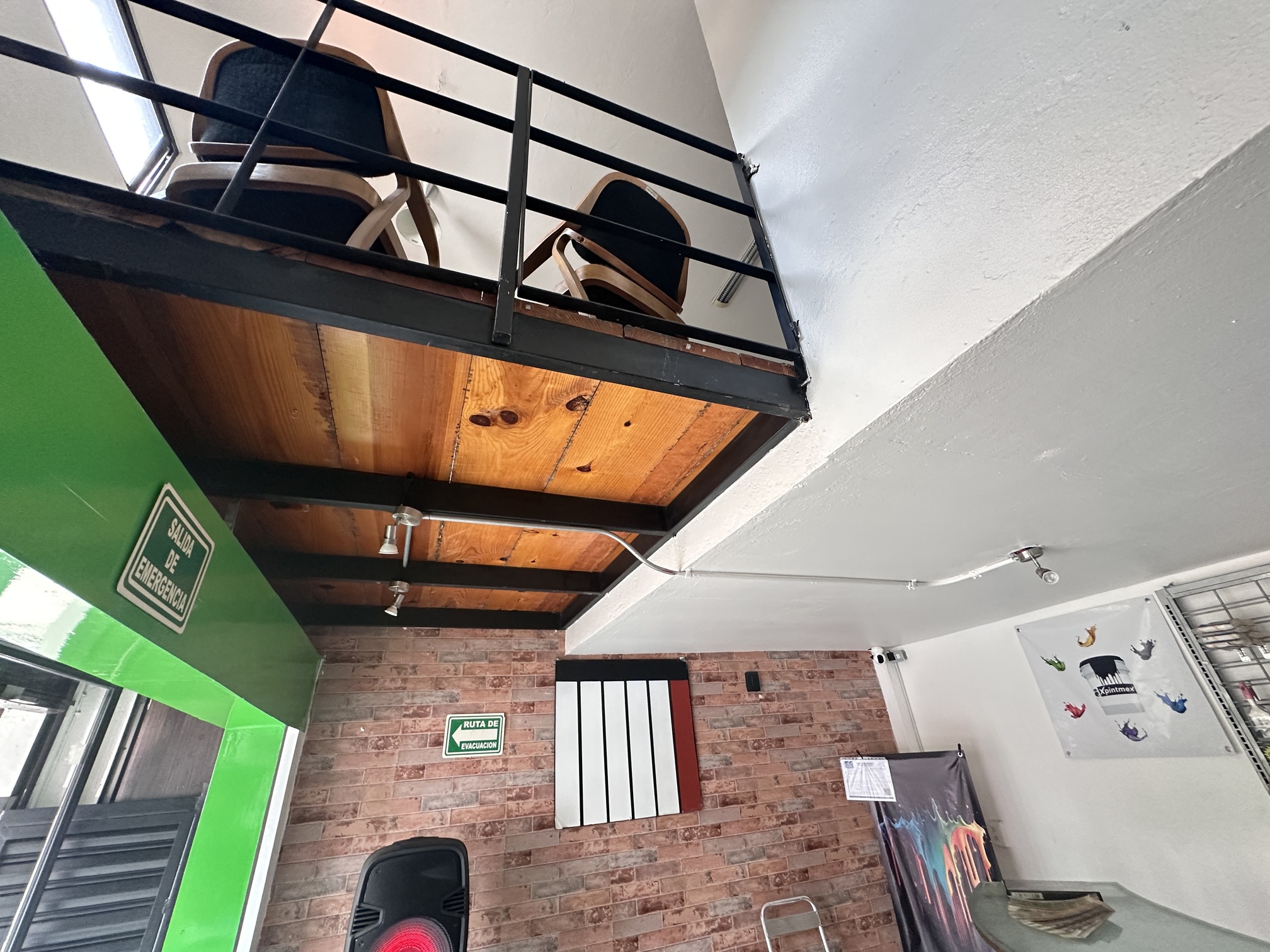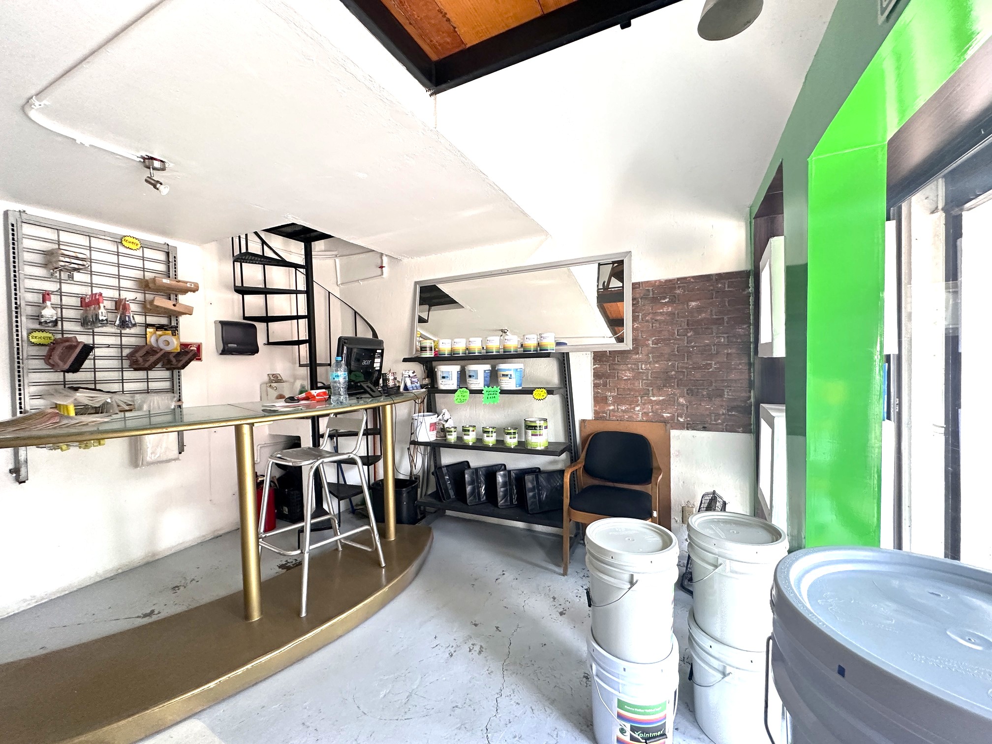 3.80 mts de frente, 4.80 fondo. Tapanco de unos 8m2 con conexión de agua y drenaje para colocar tarja.
