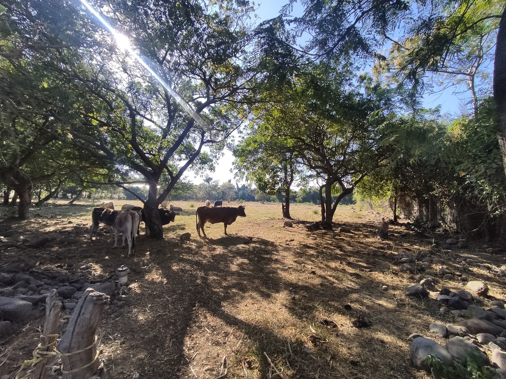 Cuenta con barda de tecorral al frente y la tierra es usada actualmente para alimentar y apacentar ganado.